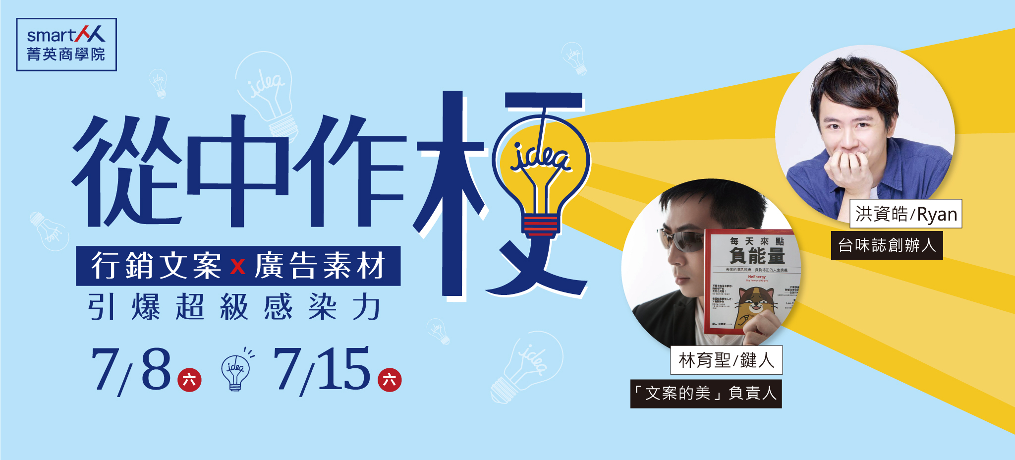 SmartM特邀「文案的美」創辦人林育聖 &《台味誌》創辦人洪資皓,從基礎觀念到完整建構,搭配分組實作與案例解析,要你2天搞懂行銷文案、廣告素材帶來高轉換率的致勝關鍵!