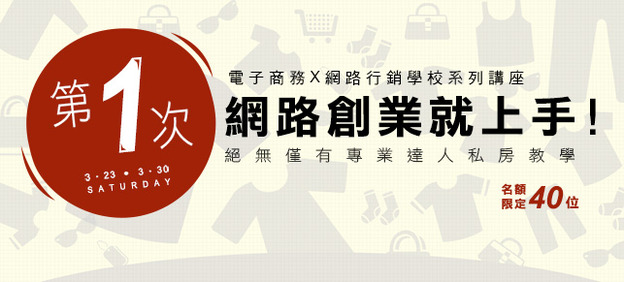 想要成為超人氣服飾網路賣家嗎?想要網路創業卻苦無門路嗎?有商品卻不知道如何銷售行銷嗎?本講座針對時下最夯的流行服飾業,提供系列講座課程!這將是台灣第一次以「流行服飾業」為主題,從市場力、社群力、經營力、行銷力,全方位帶您了解網路服飾產業創業成功的Know-how與必要條件。我們邀請到網路服飾界重量級的專家達人親自授課,不藏私的分享網路服飾業的市場趨勢、經營所需的成功必要條件、服飾業的顧客經營學,以及不可不知的網路行銷機密大公開!