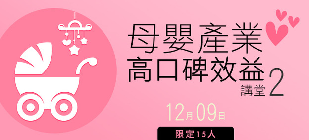 口碑×社群×電商!本課程將解析母嬰業者必知三大行銷要點:1.七大口碑操作秘訣創造品牌長尾效益2.五項社群經營技巧迅速導入免費流量3.三招教你應用數據解讀買家潛在需求在母嬰產品銷售呈現M型化的時代,各家...
