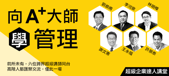 【報名額滿,謝謝大家】年度授課時數合計超越6,000小時,阿里巴巴、台積電,亞洲前50大最佳企業指定授課,六位超級講師首度同台,2015,挑戰巔峰必備的六大職場競爭力。【課程特色】1.前所未有,六位跨...
