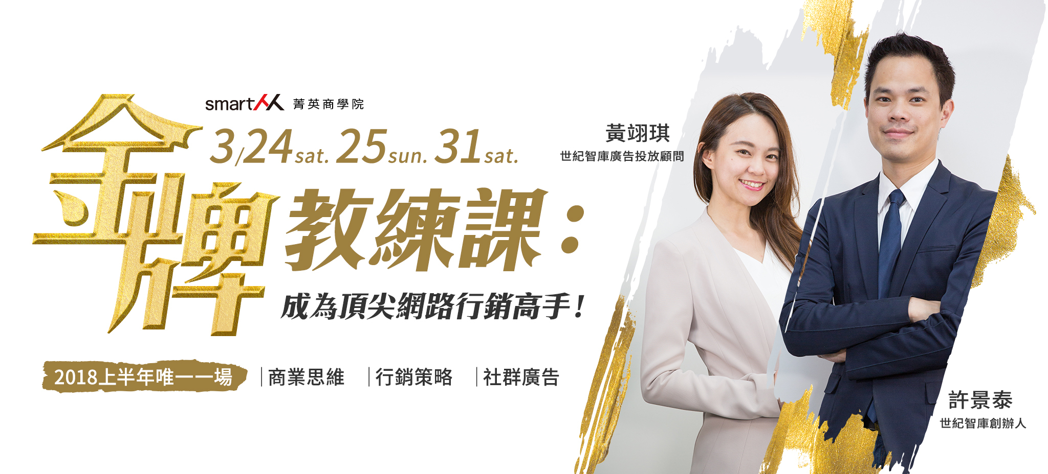 18小時教練課✔商業思維✔行銷戰略✔社群廣告本課程最多招收20名,2018上半年唯一一班!僅餘5名!敬請把握最後報名機會!03/19(一)前優惠價$36,000/人(原價$70,000元/人)這門課,...